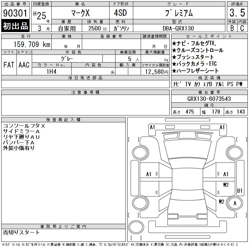 TOYOTA MARK X - лот 90301