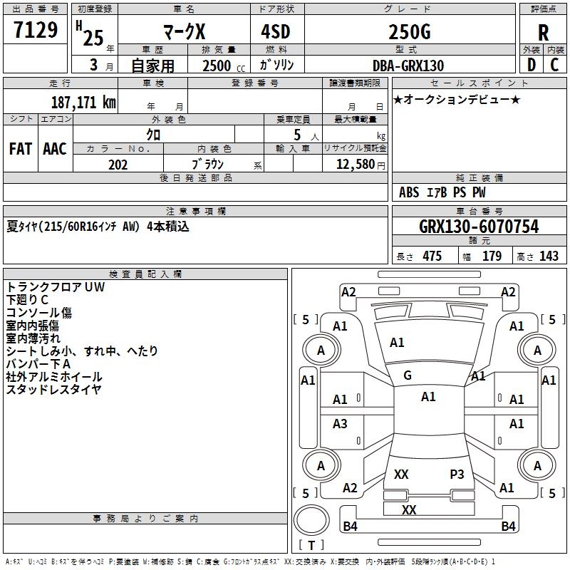 TOYOTA MARK X - лот 7129