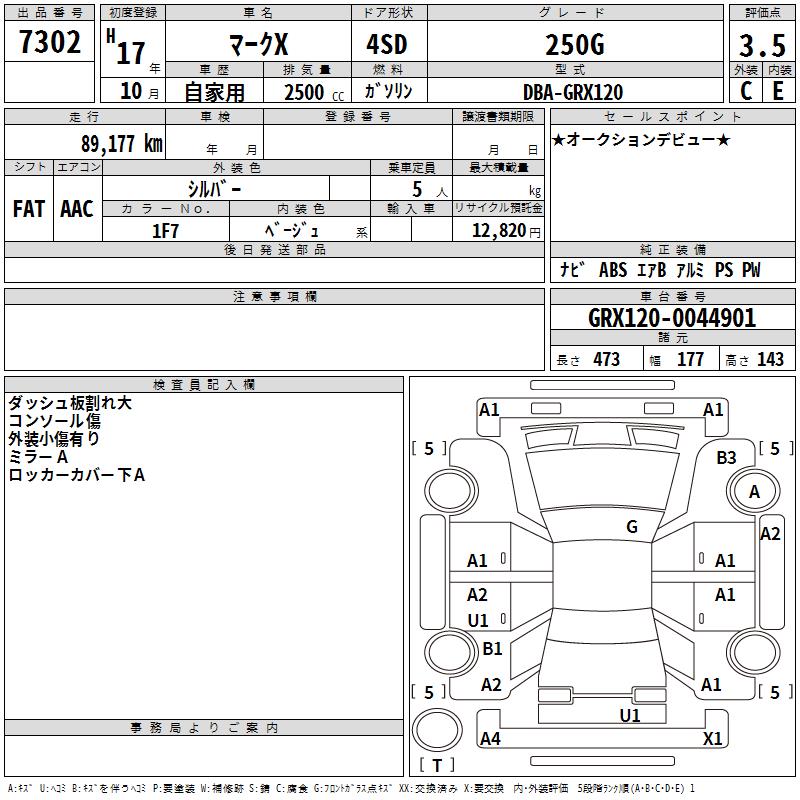 TOYOTA MARK X - лот 7302