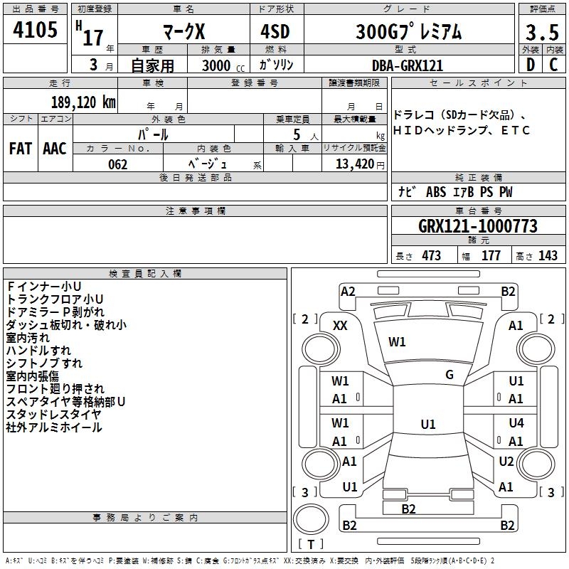 TOYOTA MARK X - лот 4105