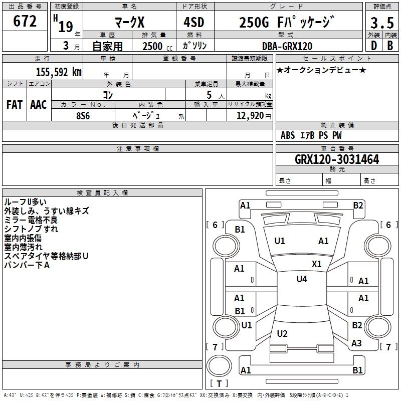 TOYOTA MARK X - лот 672