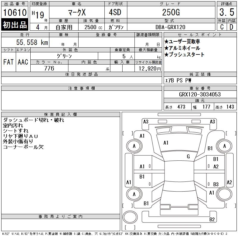 TOYOTA MARK X - лот 10610