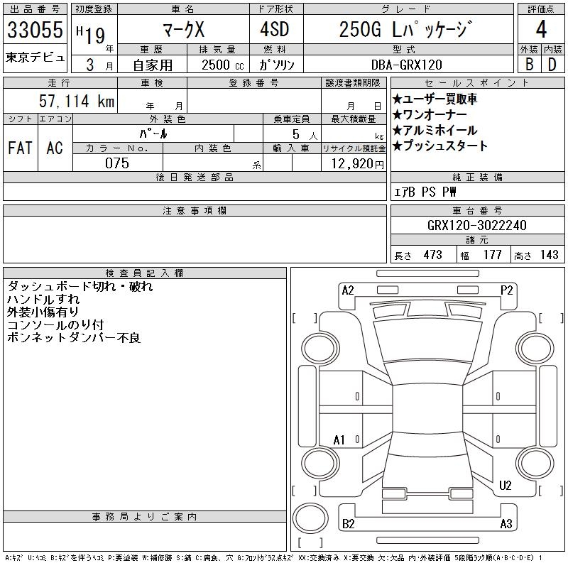 TOYOTA MARK X - лот 33055