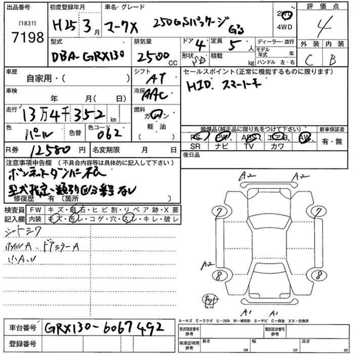 TOYOTA MARK X - лот 7198