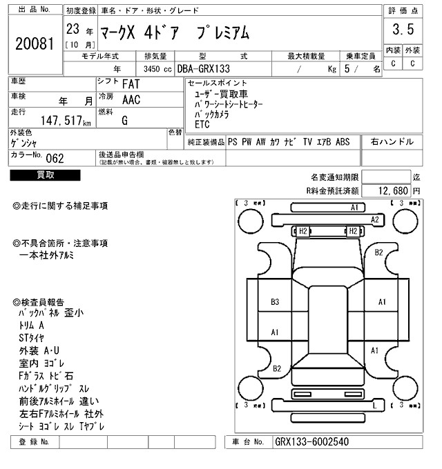 TOYOTA MARK X - лот 20081