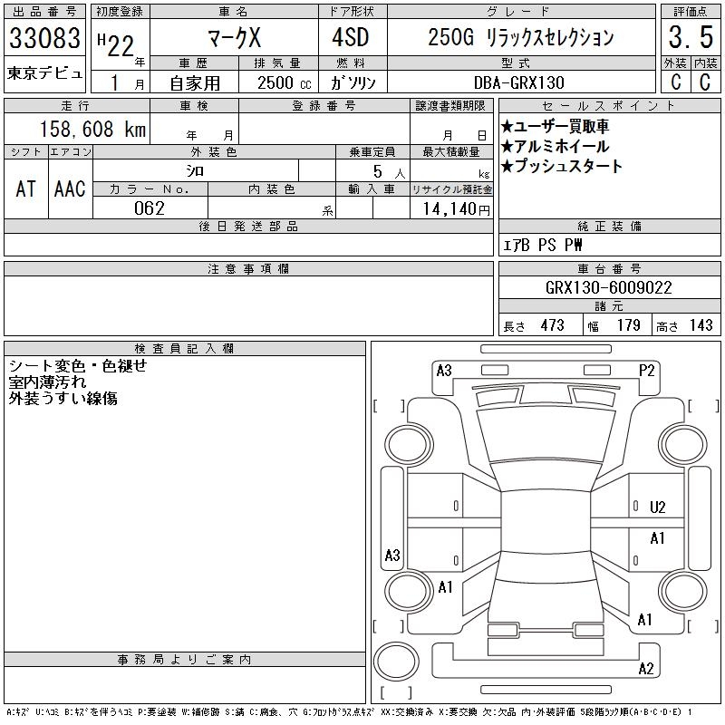 TOYOTA MARK X - лот 33083
