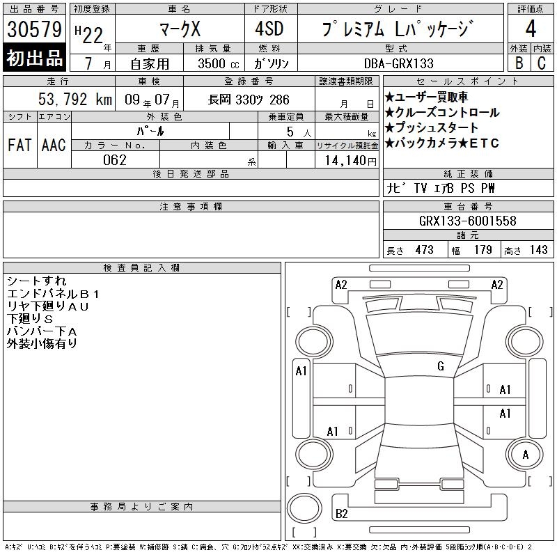 TOYOTA MARK X - лот 30579