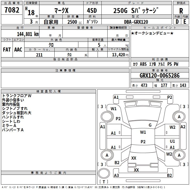 TOYOTA MARK X - лот 7082
