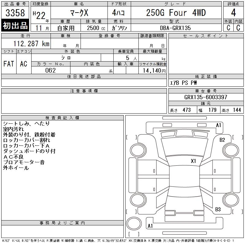 TOYOTA MARK X - лот 3358