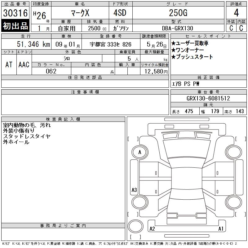 TOYOTA MARK X - лот 30316