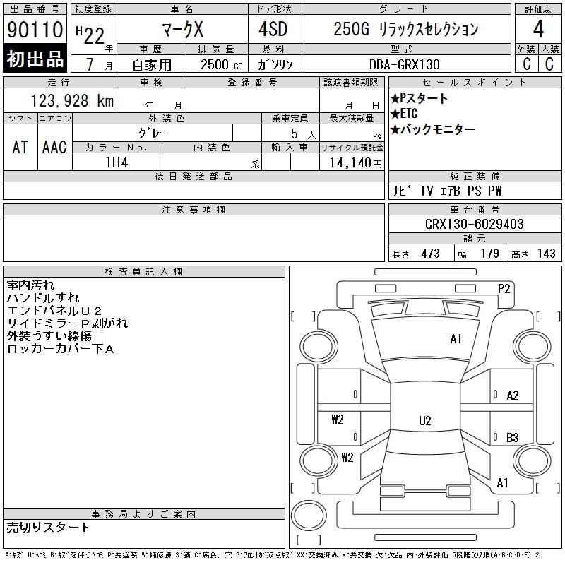 TOYOTA MARK X - лот 90110