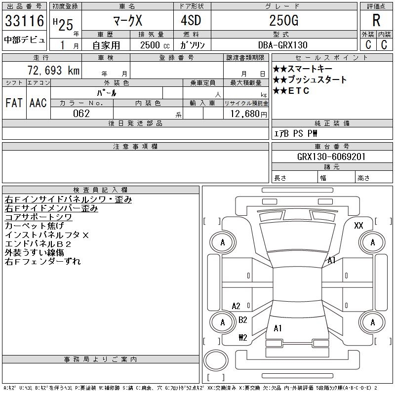 TOYOTA MARK X - лот 33116