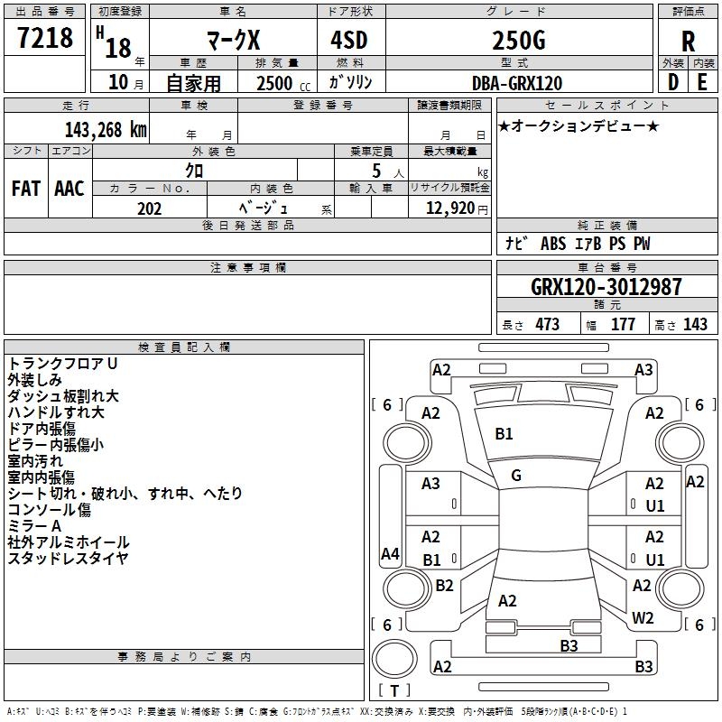TOYOTA MARK X - лот 7218