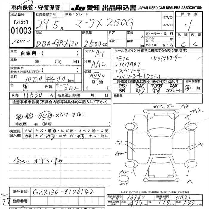 TOYOTA MARK X - лот 1003