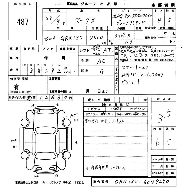 TOYOTA MARK X - лот 487