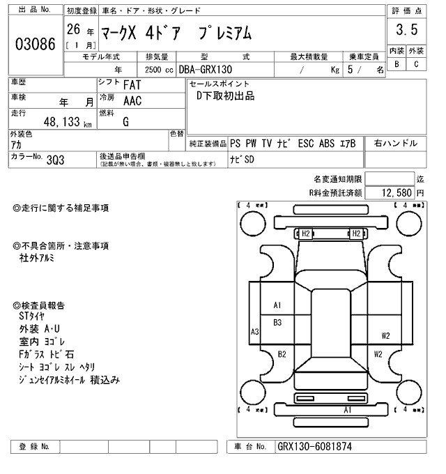 TOYOTA MARK X - лот 3086