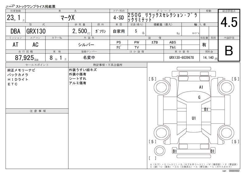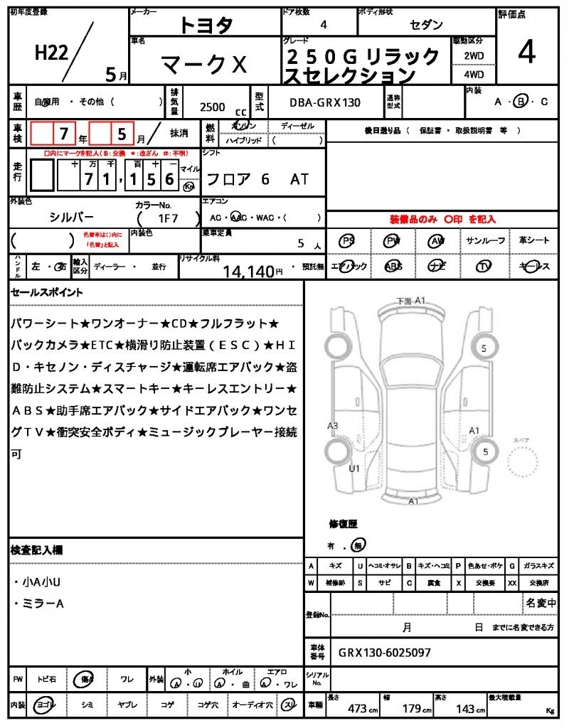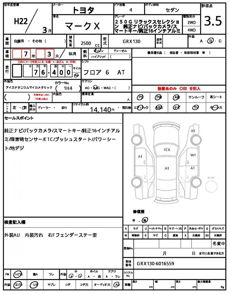 - Кузов: GRX130