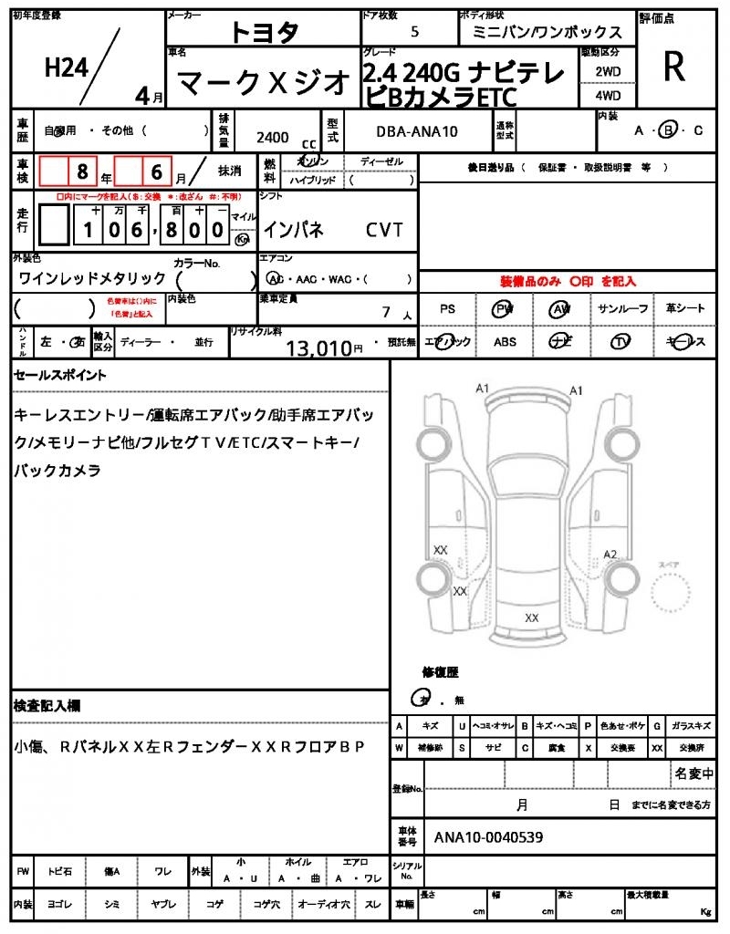 TOYOTA MARK X ZIO - лот 46915