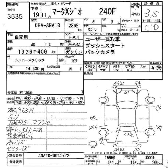 TOYOTA MARK X ZIO - лот 3535