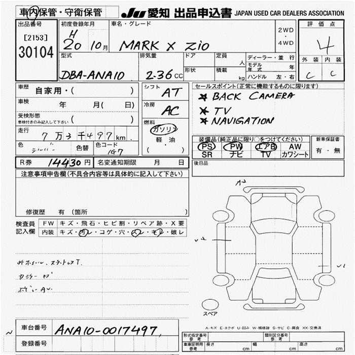 TOYOTA MARK X ZIO - лот 30104