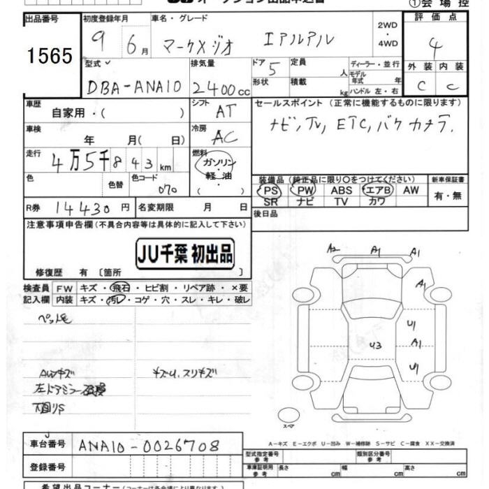 TOYOTA MARK X ZIO - лот 1565