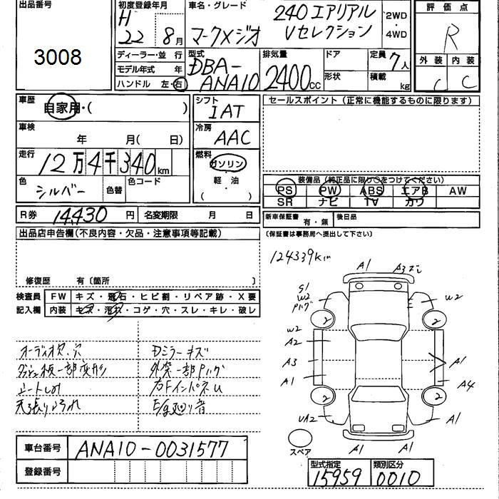 TOYOTA MARK X ZIO - лот 3008