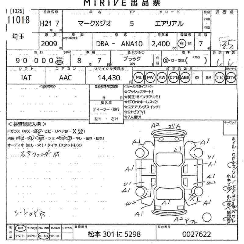 TOYOTA MARK X ZIO - лот 11018