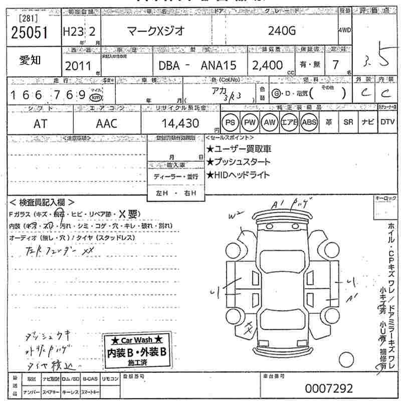 TOYOTA MARK X ZIO - лот 25051