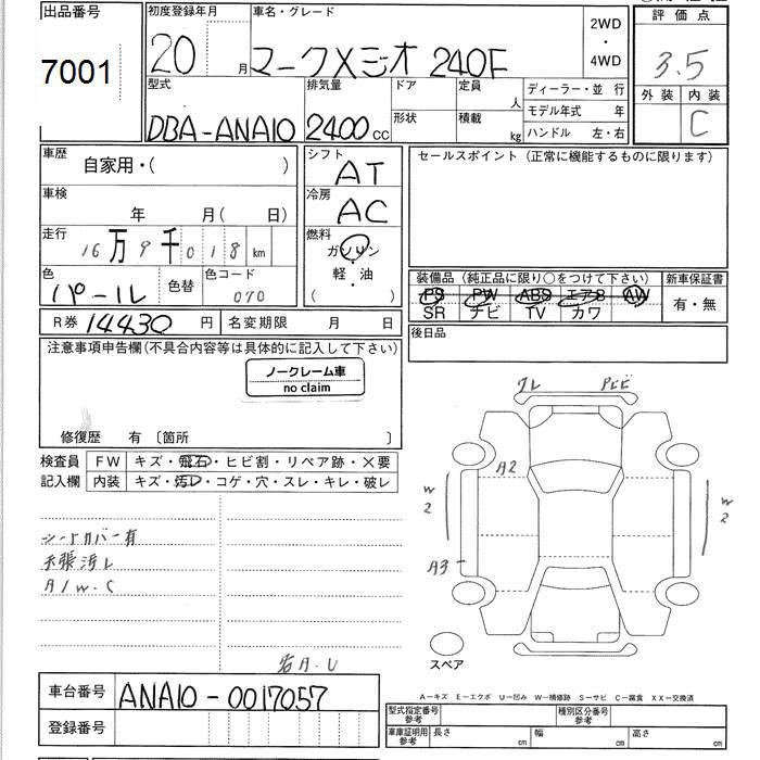 TOYOTA MARK X ZIO - лот 7001