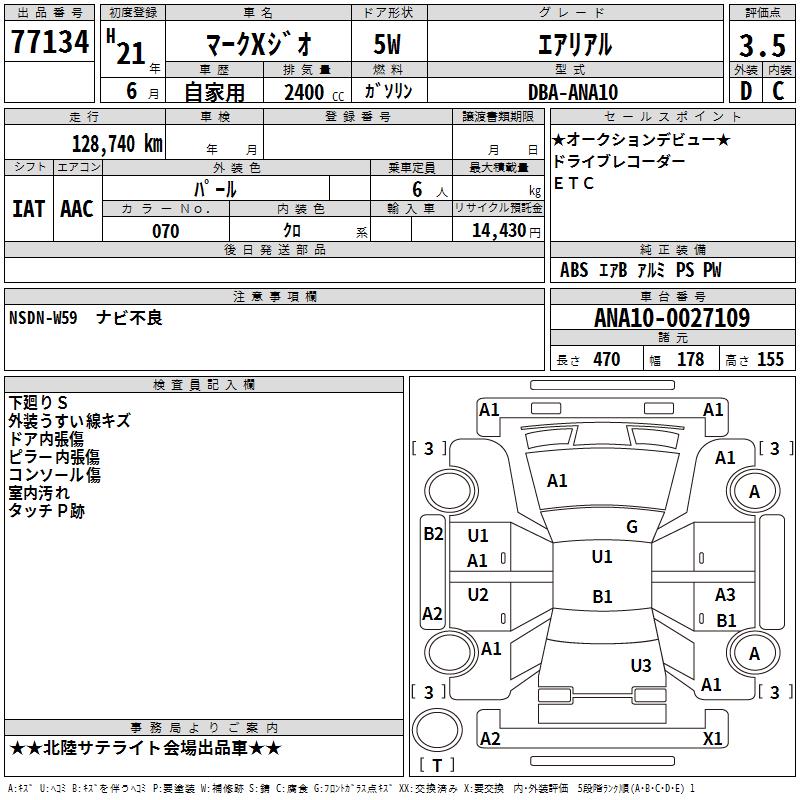 TOYOTA MARK X ZIO - лот 77134