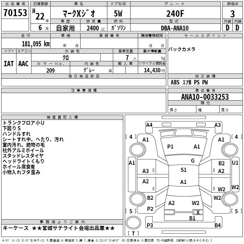 TOYOTA MARK X ZIO - лот 70153
