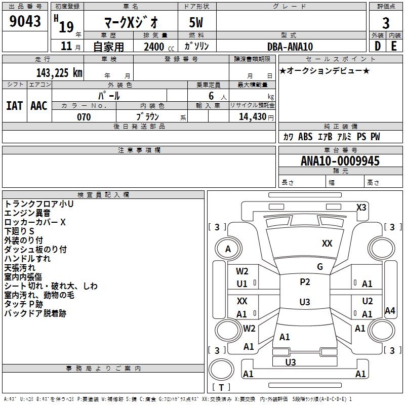 TOYOTA MARK X ZIO - лот 9043