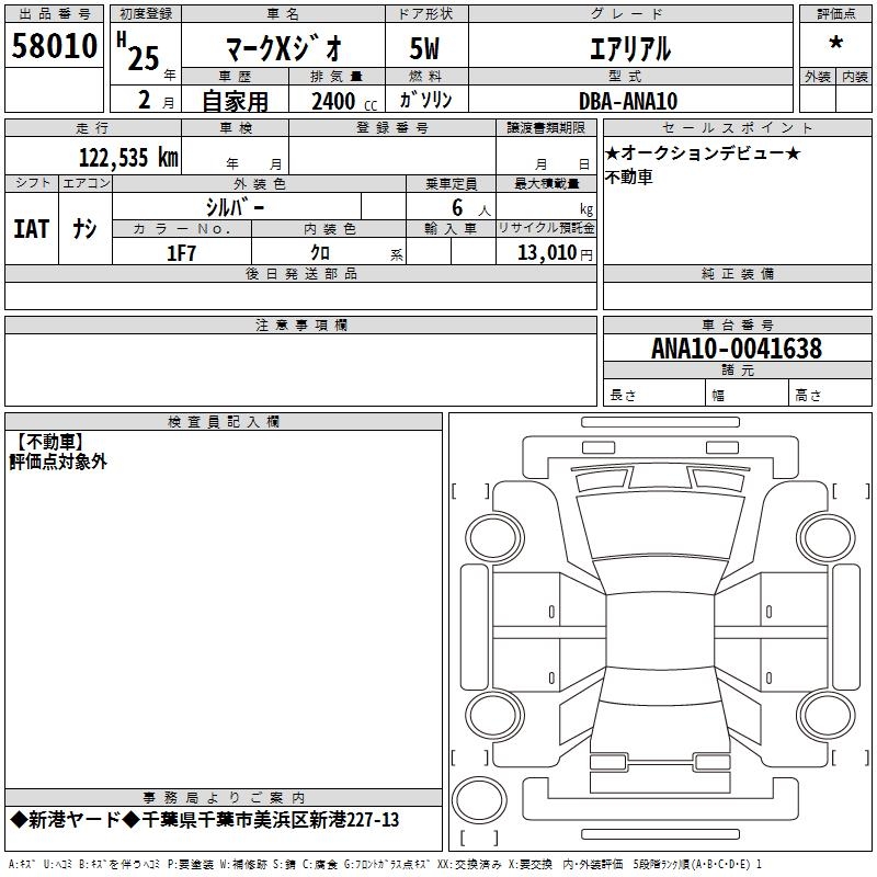 TOYOTA MARK X ZIO - лот 58010