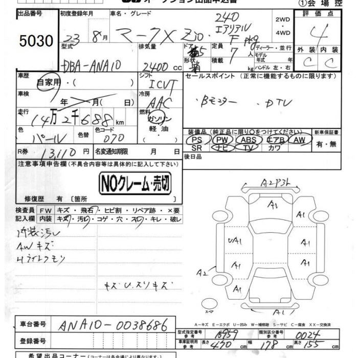 TOYOTA MARK X ZIO - лот 5030