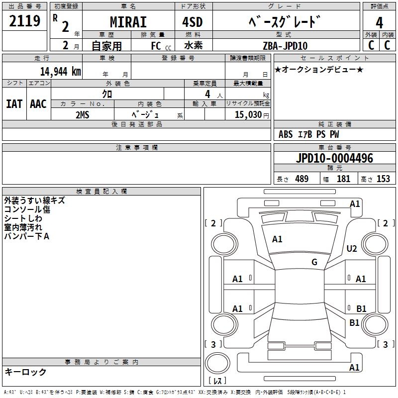 TOYOTA MIRAI BASE GRADE - лот 2119