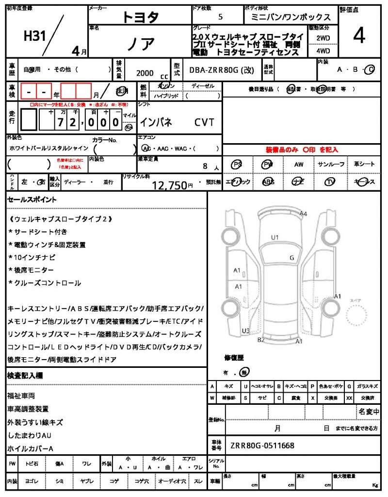 TOYOTA NOAH - лот 11789