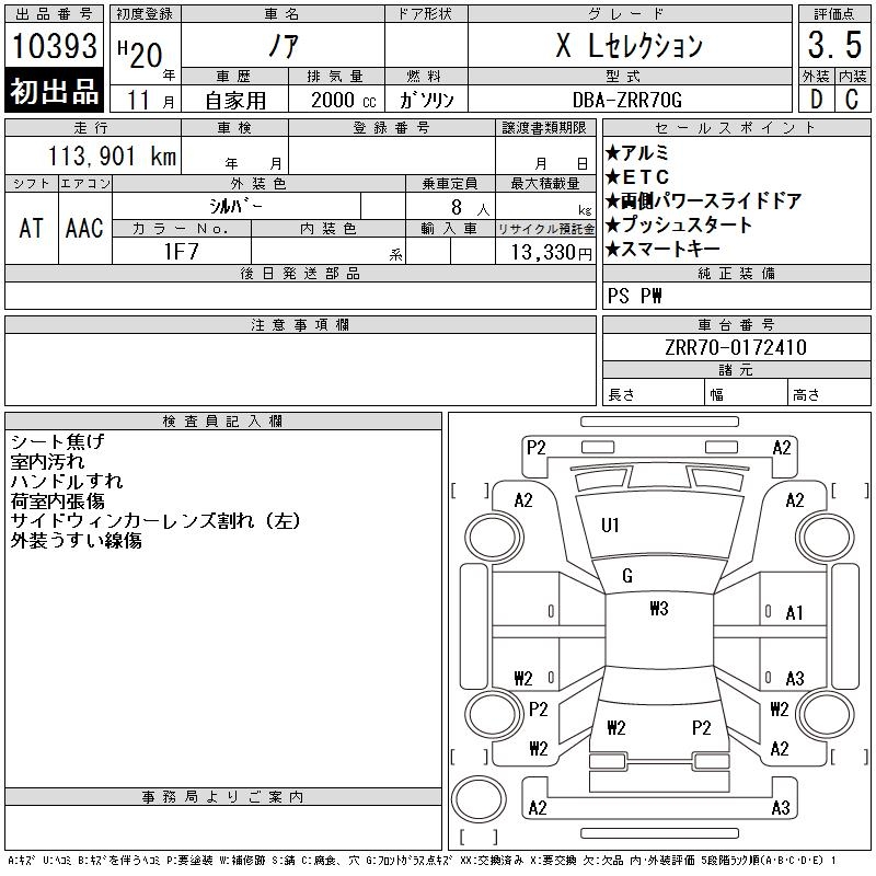 TOYOTA NOAH X L SELECTION - лот 10393