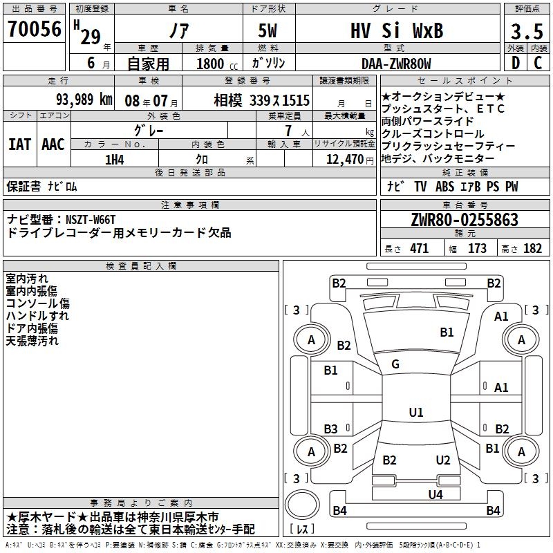 TOYOTA NOAH - лот 70056
