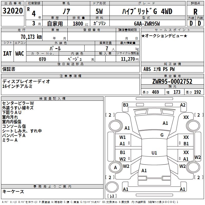 TOYOTA NOAH - лот 32020