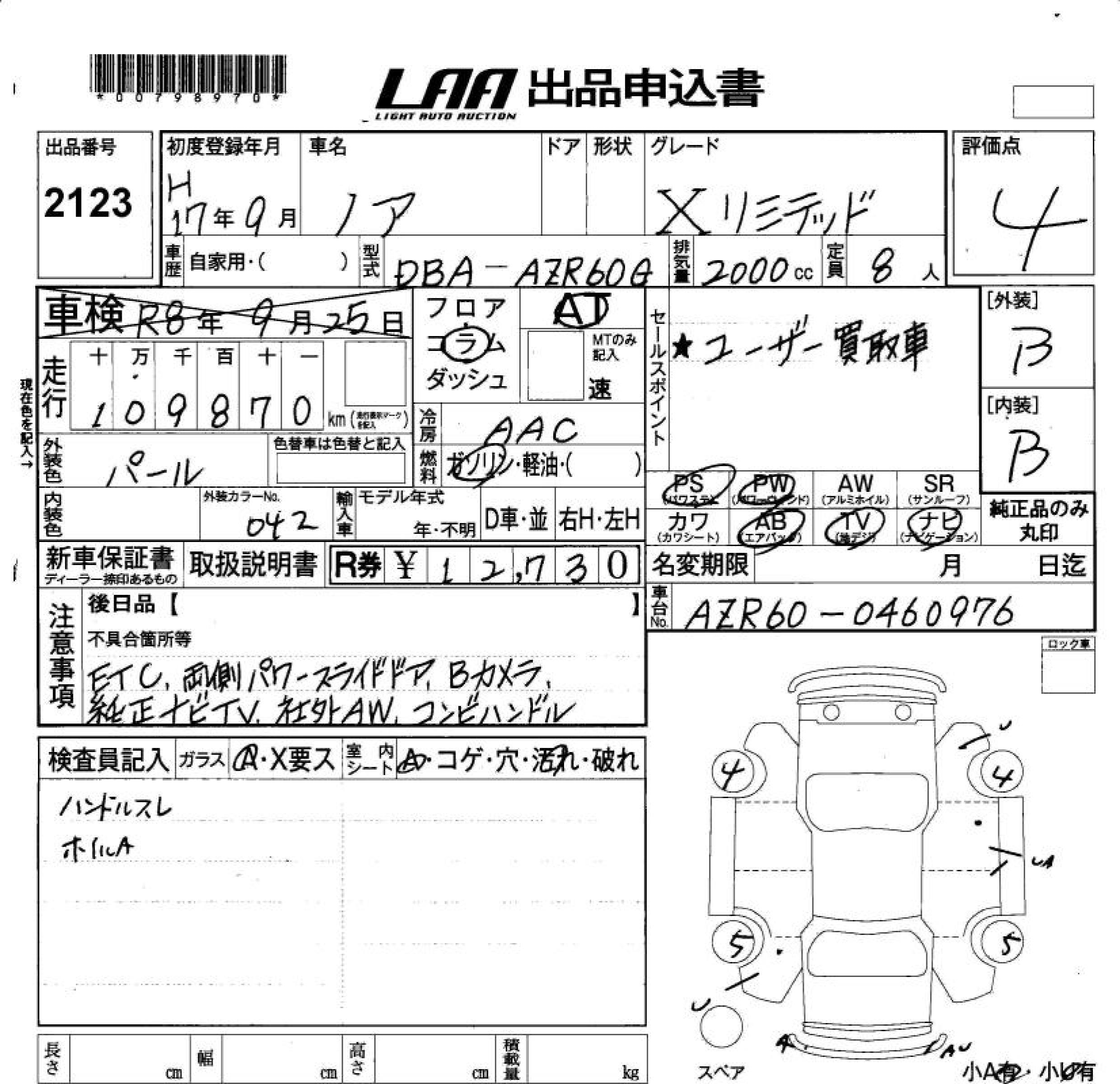 TOYOTA NOAH - лот 2123