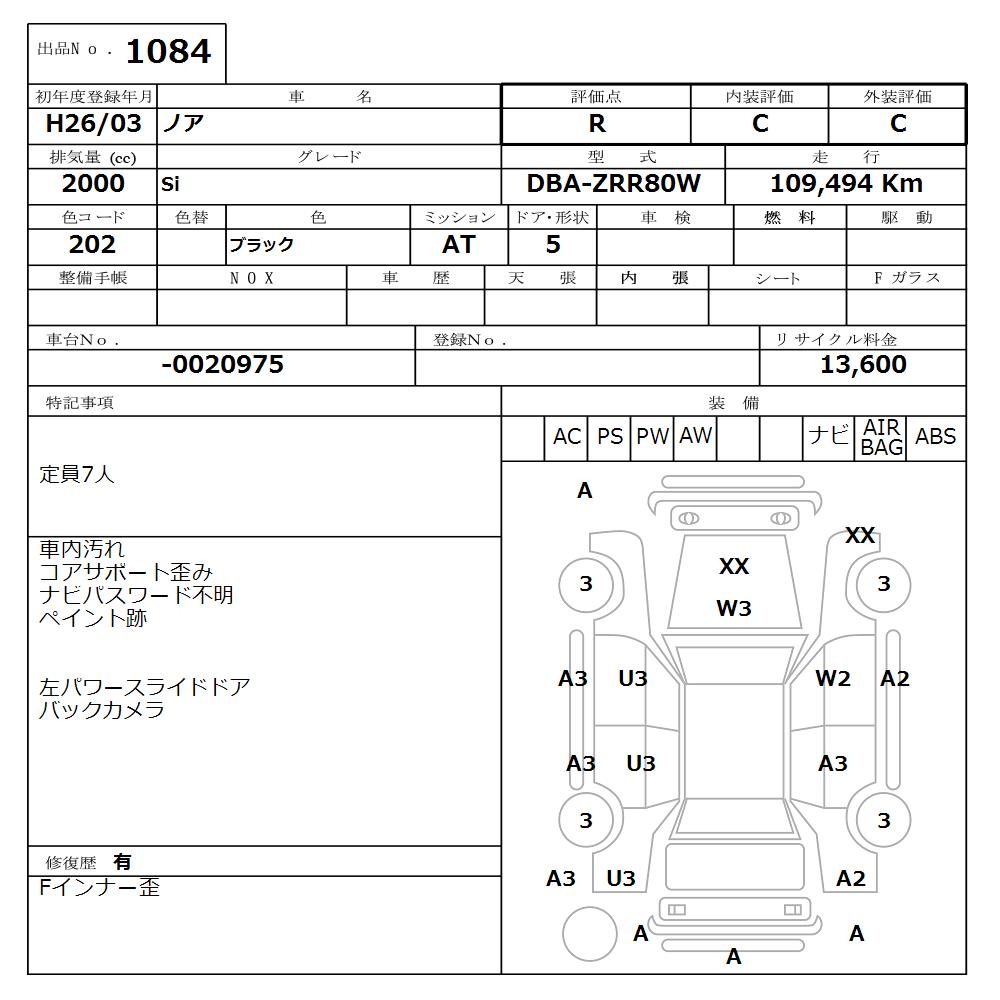TOYOTA NOAH - лот 1084