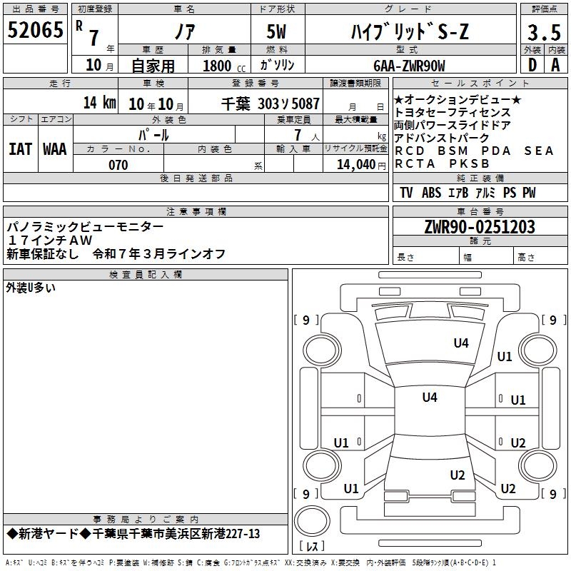 TOYOTA NOAH - лот 52065