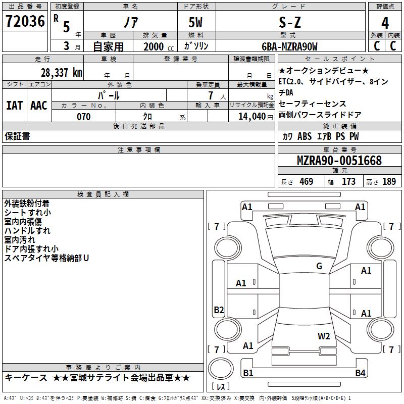 TOYOTA NOAH - лот 72036