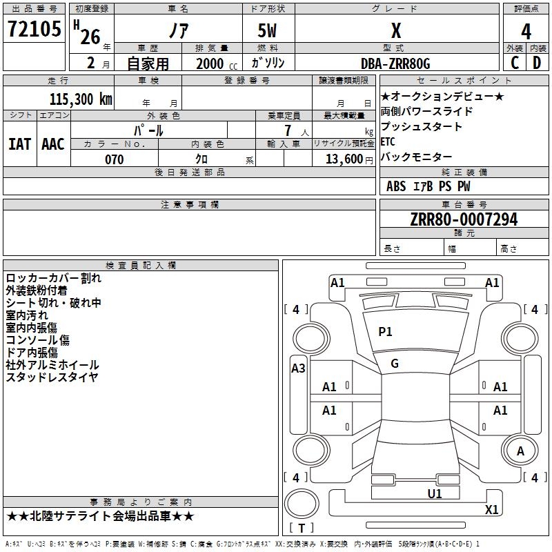 TOYOTA NOAH - лот 72105