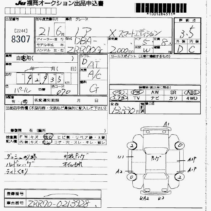 TOYOTA NOAH - лот 8307