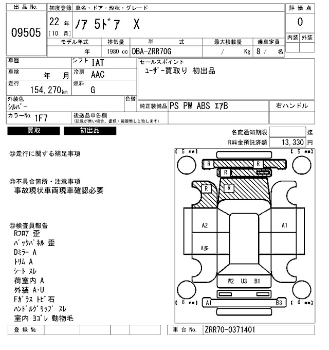TOYOTA NOAH - лот 9505