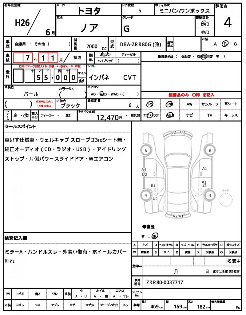 - Кузов: ZRR80G