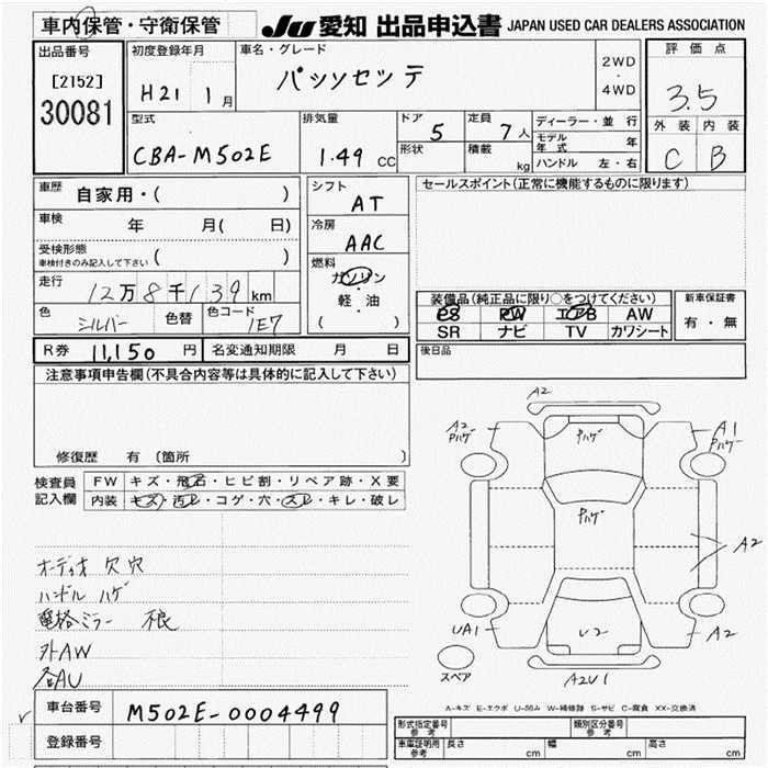 Все аукционы TOYOTA PASSO SETTE