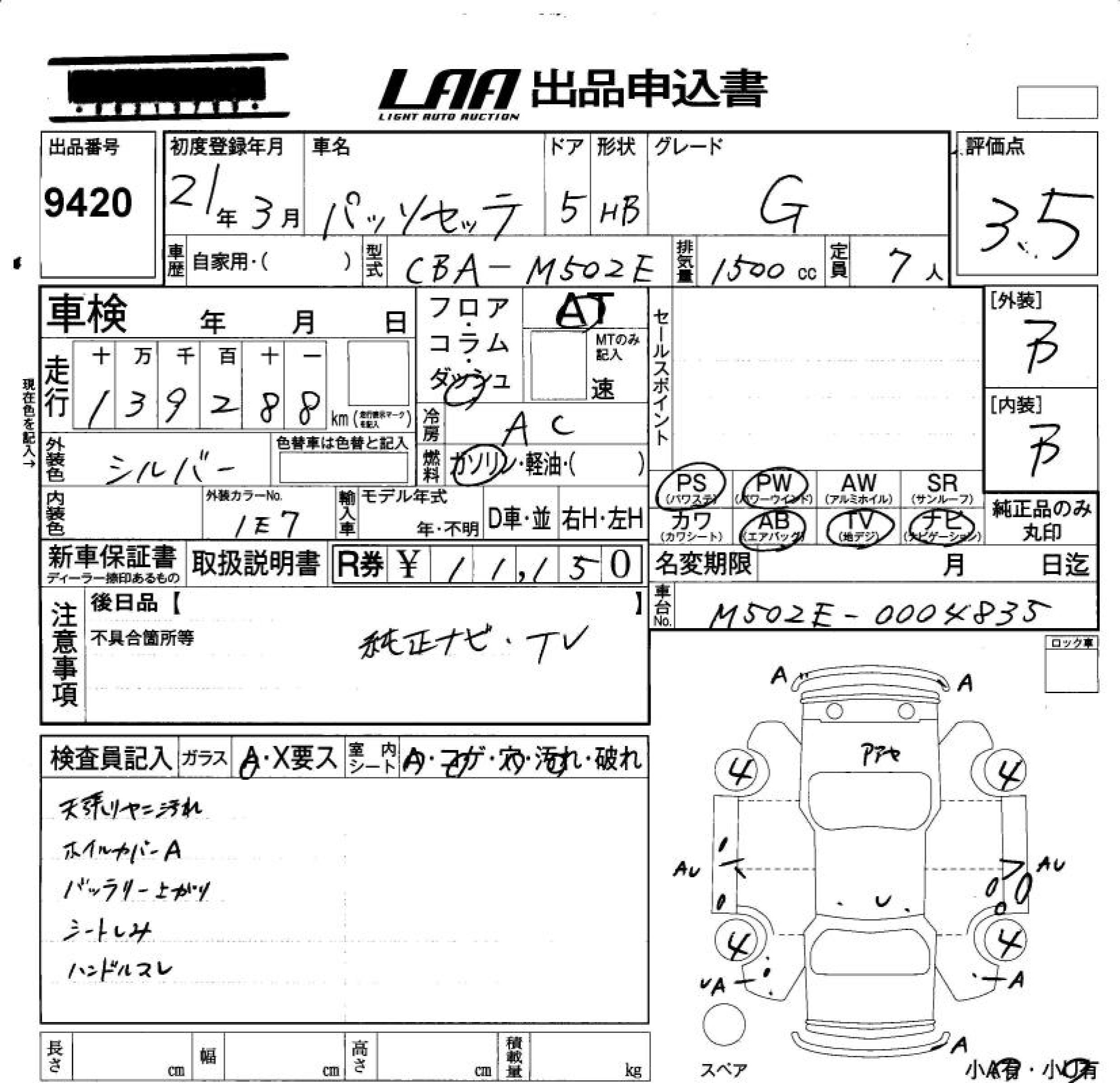 Все аукционы TOYOTA PASSO SETTE