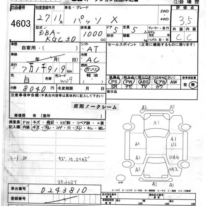 TOYOTA PASSO X - лот 4603
